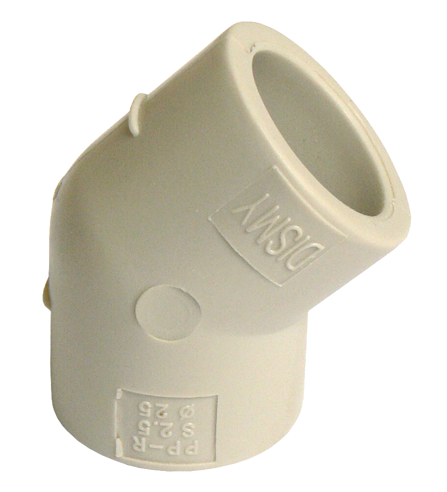 6213 PPR koleno 50 mm 45° PN 20skladem32 Kč/ ks26 Kč bez DPH