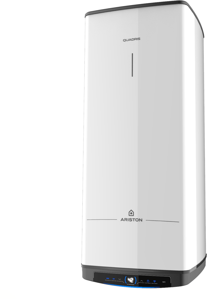 - Bojler Ariston Quadris 150 WiFi FR EU s kapacitou 150 litrů je ideální pro rodiny a středně velké domácnosti s vyšší spotřebou teplé vody