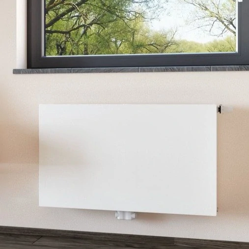 Deskové otopné těleso s hladkou čelní deskou a univerzálním připojením – připojení středové spodní, pravé spodní. Model RADIK PLAN VKM8 je deskové otopné těleso s hladkou čelní deskou (provedení PLAN) a současně v provedení VENTIL KOMPAKT. Toto řešení umožňuje spodní středové nebo pravé spodní připojení otopného tělesa na otopnou soustavu s nuceným oběhem. Na zadní stranu otopného tělesa jsou přivařeny dvě horní a dolní příchytky, otopná tělesa o délce 1800 mm a delší mají navařených šest příchytek.