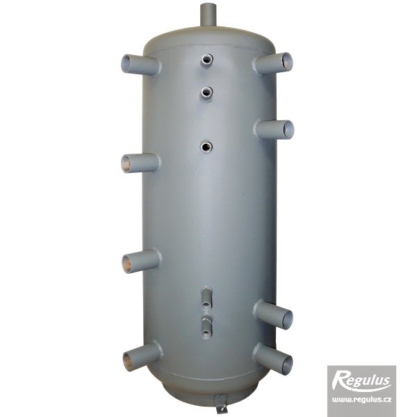 Nádrž určená k akumulaci a následné distribuci tepelné energie z kotlů na pevná paliva, tepelných čerpadel případně jiných zdrojů tepla. Nádrž má 9 návarků G 6/4" pro připojení tepelných zdrojů a zátěží nebo vložení el. topných těles.